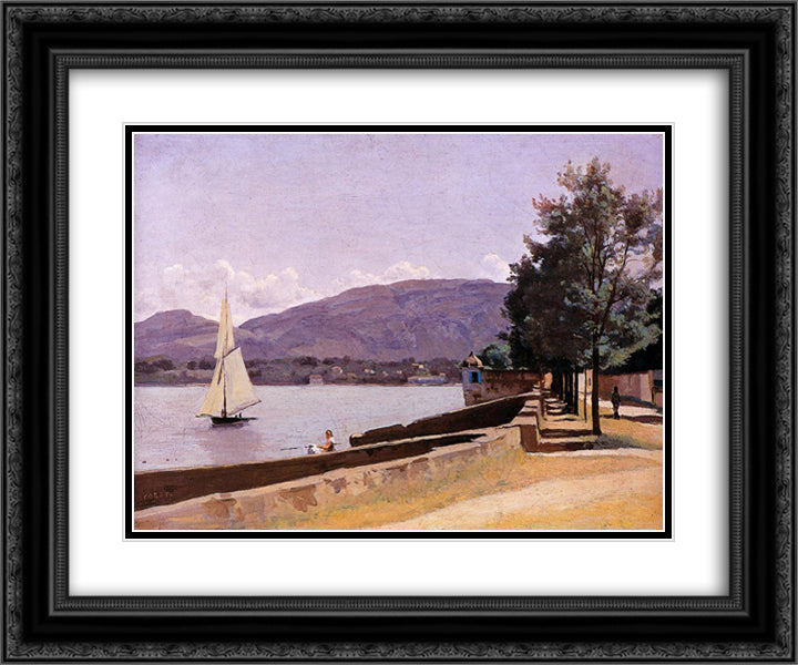 The Quai des Paquis, Geneva 24x20 Black Ornate Wood Framed Art Print Poster with Double Matting by Corot, Jean Baptiste Camille
