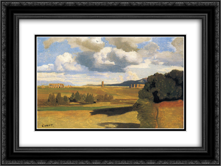 The Roman Campagna with the Claudian Aqueduct 24x18 Black Ornate Wood Framed Art Print Poster with Double Matting by Corot, Jean Baptiste Camille
