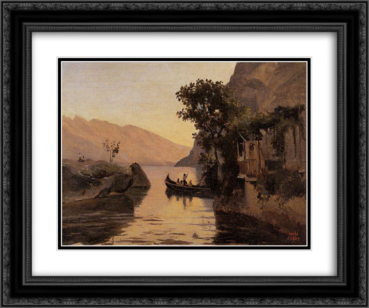 View at Riva, Italian Tyrol 24x20 Black Ornate Wood Framed Art Print Poster with Double Matting by Corot, Jean Baptiste Camille