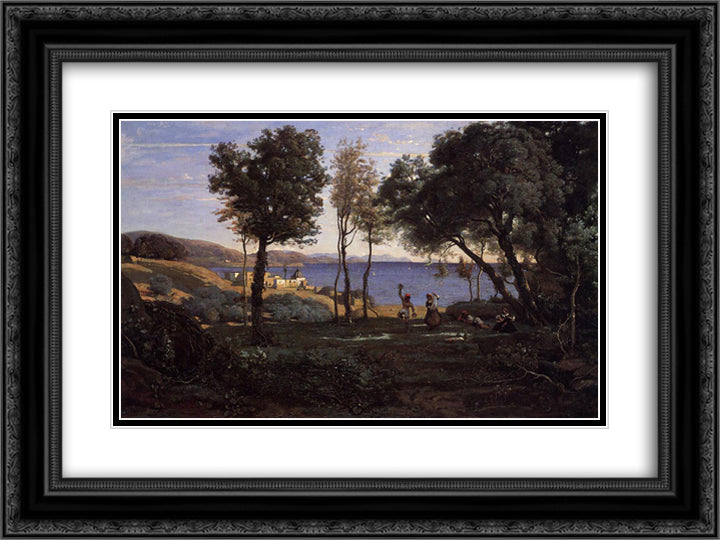 View near Naples 24x18 Black Ornate Wood Framed Art Print Poster with Double Matting by Corot, Jean Baptiste Camille
