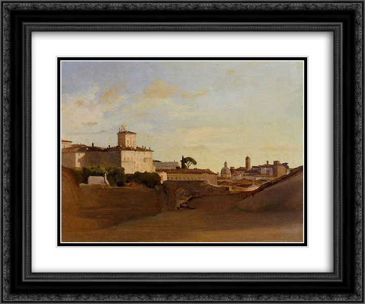 View of Pincio, Italy 24x20 Black Ornate Wood Framed Art Print Poster with Double Matting by Corot, Jean Baptiste Camille