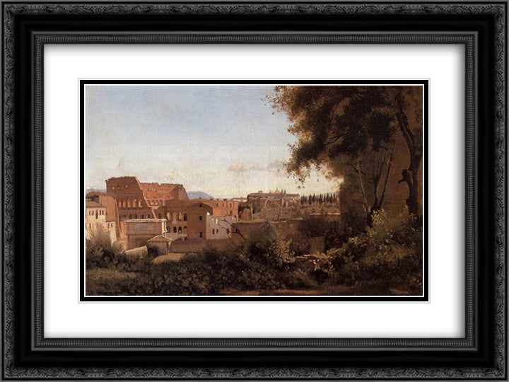 View of the Colosseum from the Farnese Gardens 24x18 Black Ornate Wood Framed Art Print Poster with Double Matting by Corot, Jean Baptiste Camille
