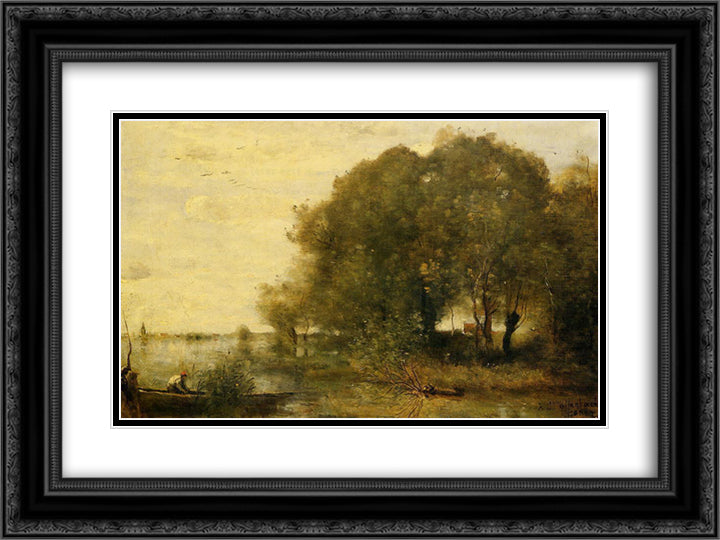 Wooded Peninsula 24x18 Black Ornate Wood Framed Art Print Poster with Double Matting by Corot, Jean Baptiste Camille