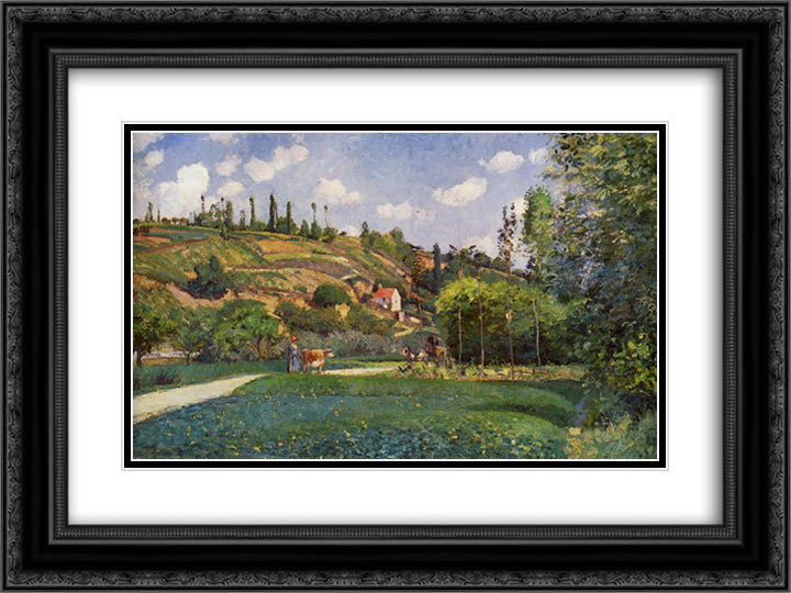 A Cowherd on the Route de Chou, Pontoise 24x18 Black Ornate Wood Framed Art Print Poster with Double Matting by Pissarro, Camille