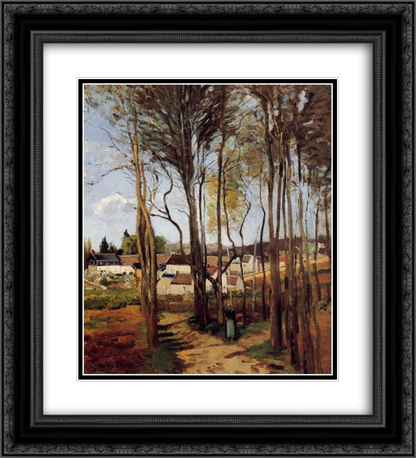 A Village through the Trees 20x22 Black Ornate Wood Framed Art Print Poster with Double Matting by Pissarro, Camille
