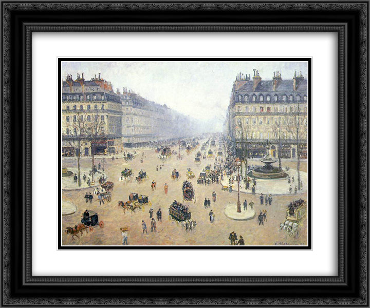 Avenue de l'Opera, Place du Theatre Francais. Misty 24x20 Black Ornate Wood Framed Art Print Poster with Double Matting by Pissarro, Camille