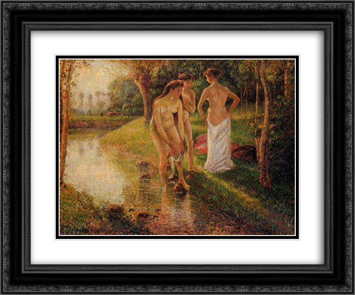 Bathers 24x20 Black Ornate Wood Framed Art Print Poster with Double Matting by Pissarro, Camille