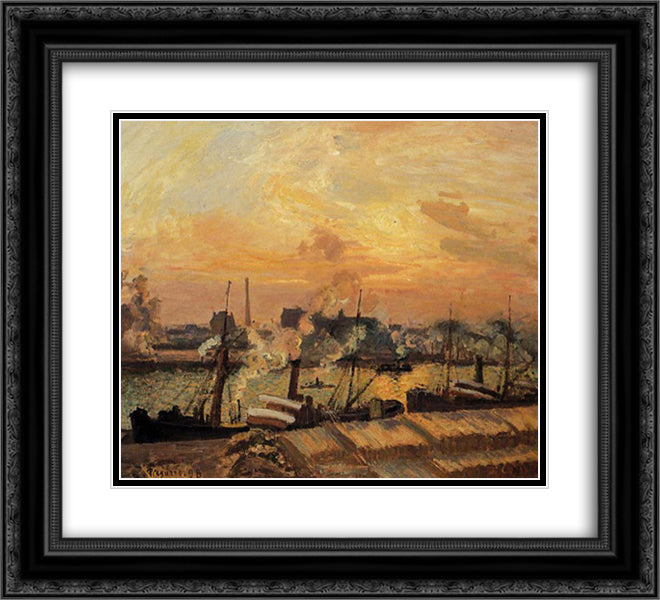 Boats, Sunset, Rouen 22x20 Black Ornate Wood Framed Art Print Poster with Double Matting by Pissarro, Camille