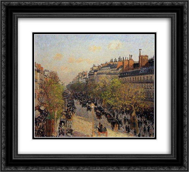 Boulevard Montmartre, Sunset 22x20 Black Ornate Wood Framed Art Print Poster with Double Matting by Pissarro, Camille