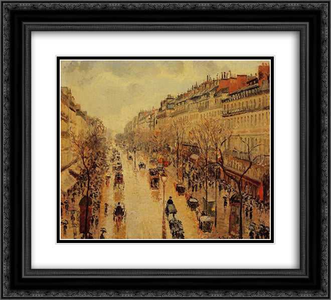 Boulevard Montmartre Afternoon, in the Rain 22x20 Black Ornate Wood Framed Art Print Poster with Double Matting by Pissarro, Camille