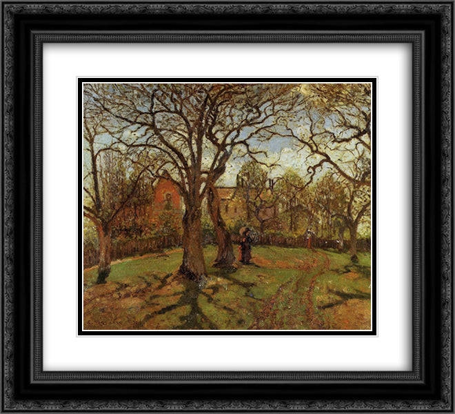 Chestnut Trees, Louveciennes, Spring 22x20 Black Ornate Wood Framed Art Print Poster with Double Matting by Pissarro, Camille