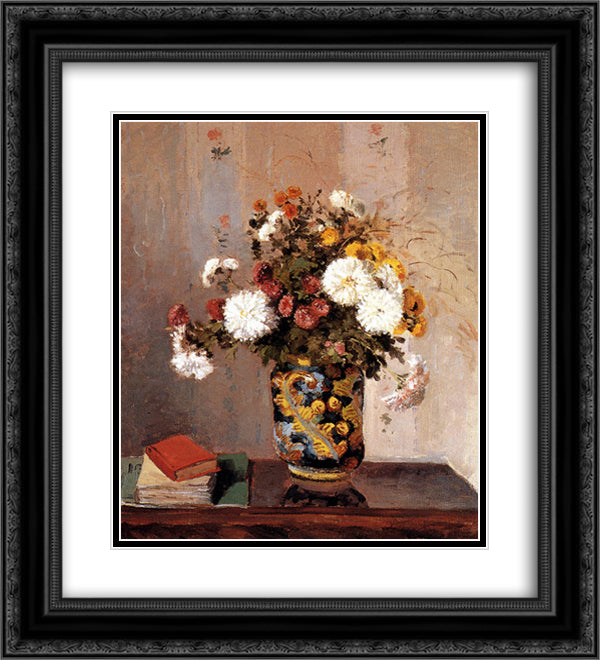 Chrysanthemums In a Chinese Vase 20x22 Black Ornate Wood Framed Art Print Poster with Double Matting by Pissarro, Camille