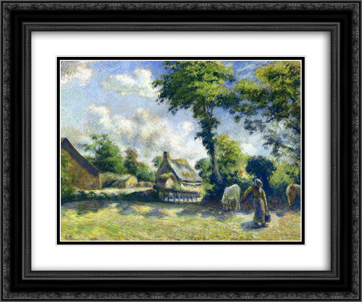 Landscape at Melleray, Woman Carrying Water to Horses 24x20 Black Ornate Wood Framed Art Print Poster with Double Matting by Pissarro, Camille