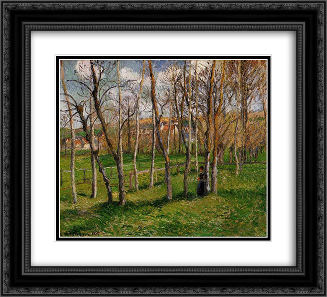 Meadow at Bazincourt 22x20 Black Ornate Wood Framed Art Print Poster with Double Matting by Pissarro, Camille