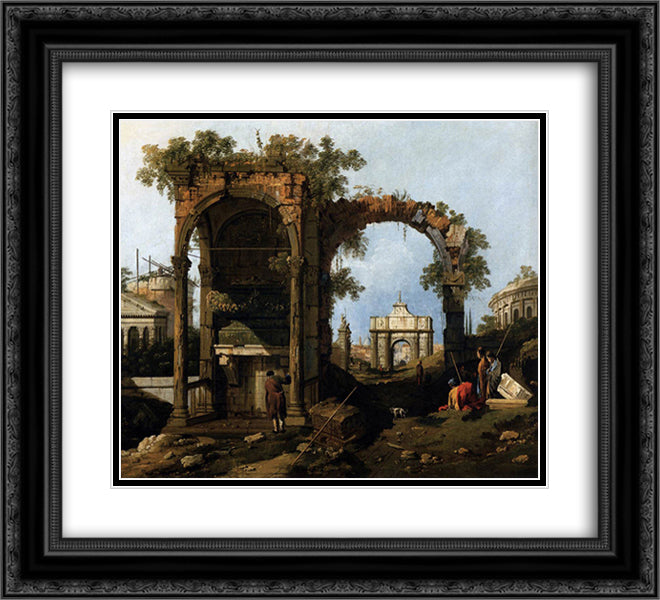 Capriccio with Classical Ruins and Buildings 22x20 Black Ornate Wood Framed Art Print Poster with Double Matting by Canaletto
