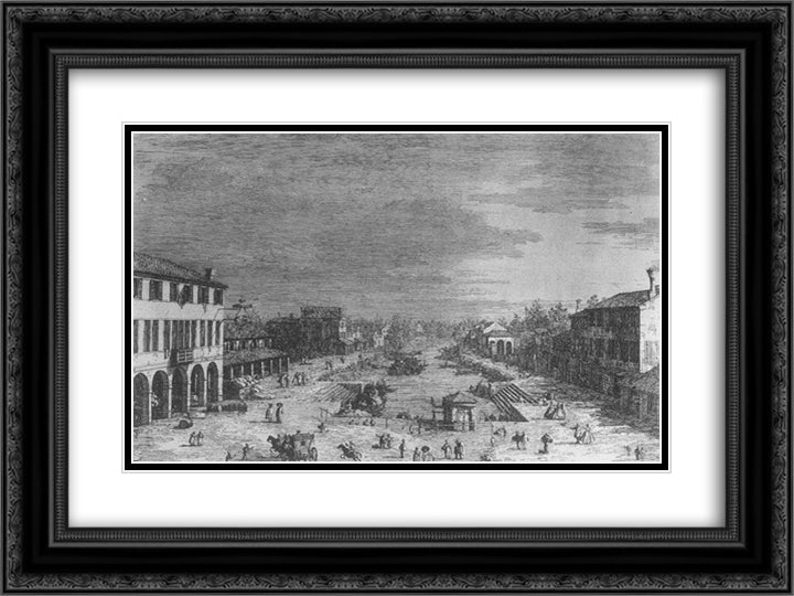 Mestre 24x18 Black Ornate Wood Framed Art Print Poster with Double Matting by Canaletto