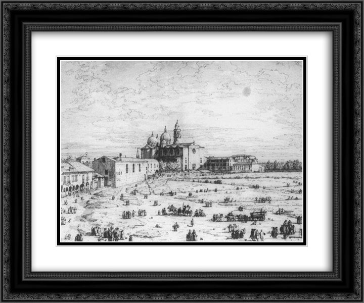 Padua The Prato della Valle with Santa Giustinia and the Church of Misericordia 24x20 Black Ornate Wood Framed Art Print Poster with Double Matting by Canaletto