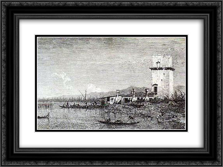 The Tow of Malghera 24x18 Black Ornate Wood Framed Art Print Poster with Double Matting by Canaletto