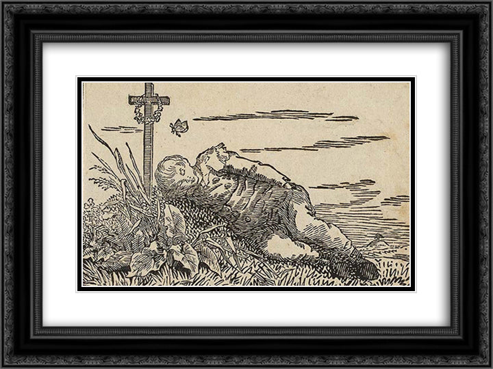 Boy sleeping on a grave 24x18 Black Ornate Wood Framed Art Print Poster with Double Matting by Friedrich, Caspar David