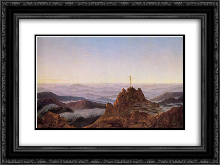 Morning in Riesengebirge 24x18 Black Ornate Wood Framed Art Print Poster with Double Matting by Friedrich, Caspar David
