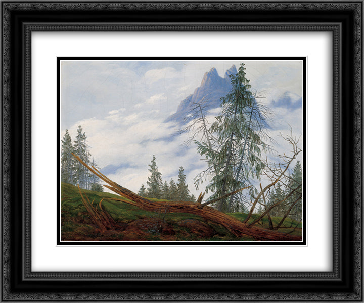 Mountain Peak with Drifting Clouds 24x20 Black Ornate Wood Framed Art Print Poster with Double Matting by Friedrich, Caspar David