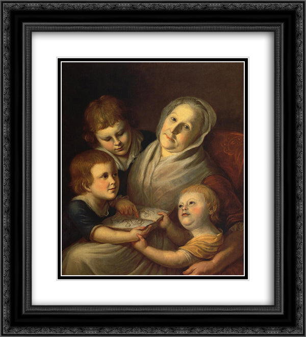 The Artist's Mother, Mrs. Charles Peale, and Her Grandchildren 20x22 Black Ornate Wood Framed Art Print Poster with Double Matting by Peale, Charles Willson