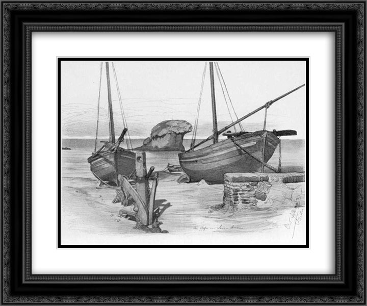 (La bella Napoli) Harbour of Lacco Ameno (Ischia, Italy) 24x20 Black Ornate Wood Framed Art Print Poster with Double Matting by Allers, Christian Wilhelm