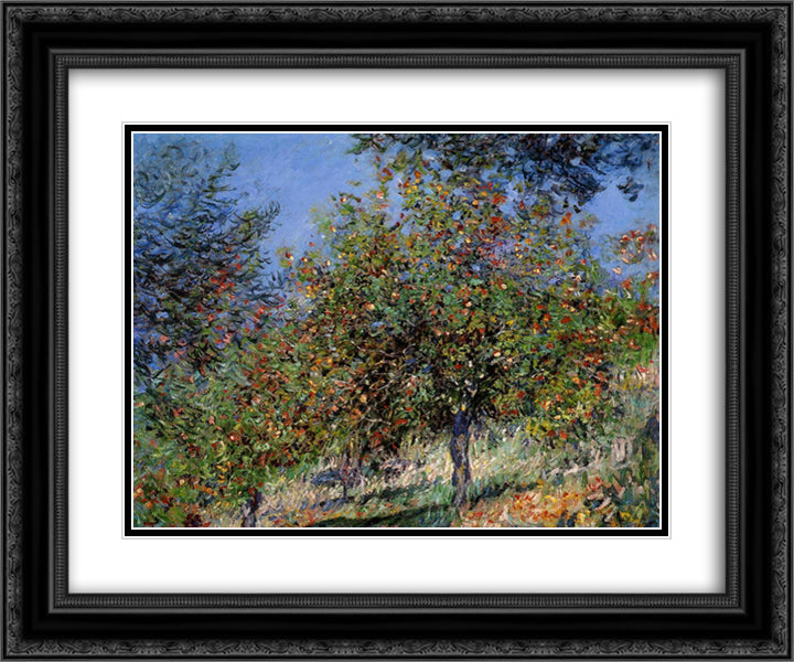 Apple Trees on the Chantemesle Hill 24x20 Black Ornate Wood Framed Art Print Poster with Double Matting by Monet, Claude