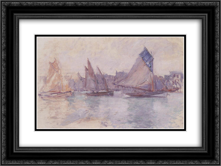 Boats in the Port of Le Havre 24x18 Black Ornate Wood Framed Art Print Poster with Double Matting by Monet, Claude