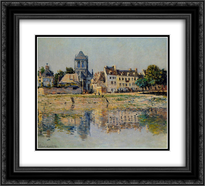 By the River at Vernon 22x20 Black Ornate Wood Framed Art Print Poster with Double Matting by Monet, Claude