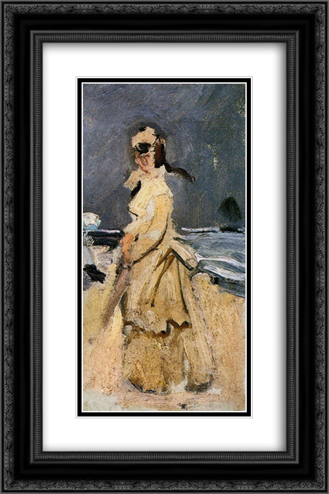 Camille on the Beach 16x24 Black Ornate Wood Framed Art Print Poster with Double Matting by Monet, Claude