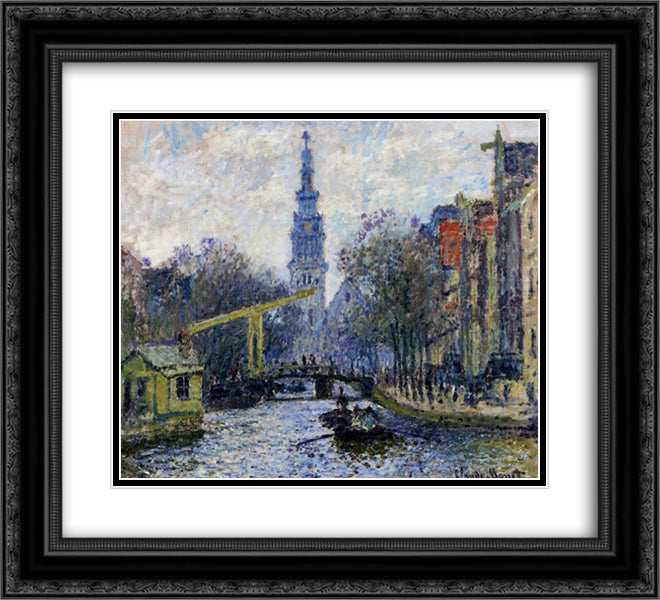 Canal in Amsterdam 22x20 Black Ornate Wood Framed Art Print Poster with Double Matting by Monet, Claude