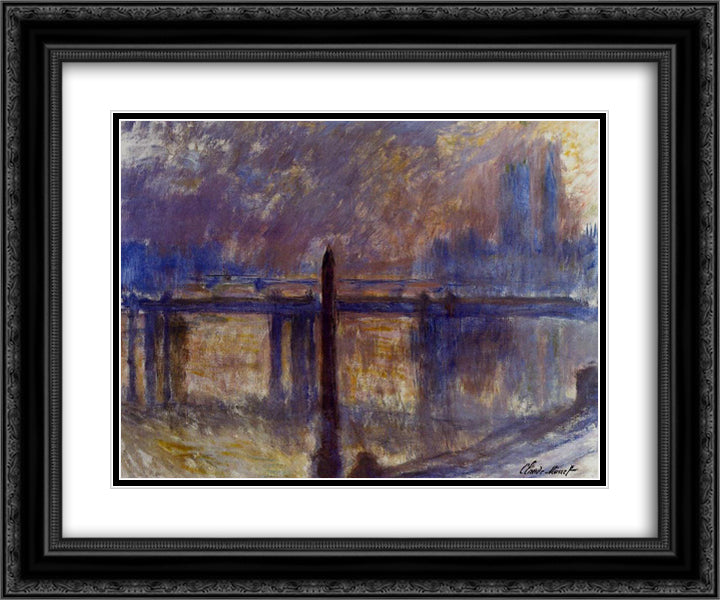 Charing Cross Bridge, Cleopatra's Needle 24x20 Black Ornate Wood Framed Art Print Poster with Double Matting by Monet, Claude
