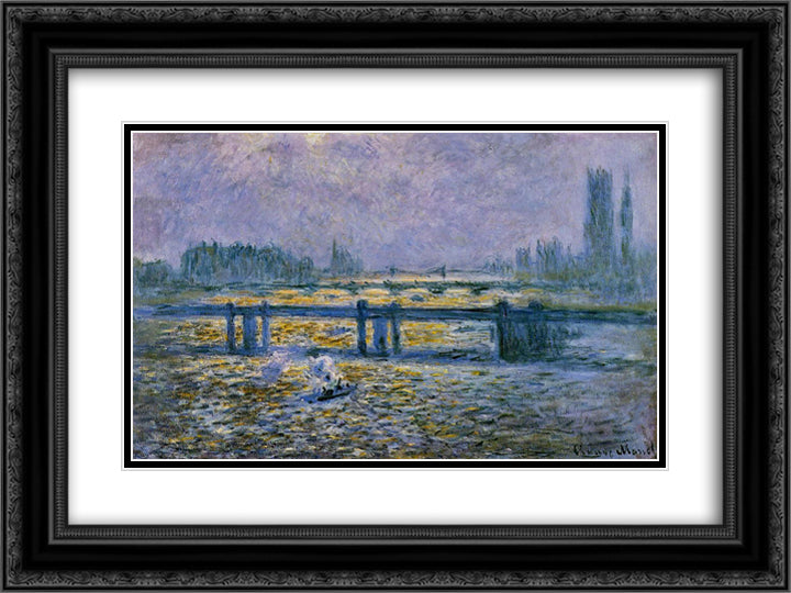 Charing Cross Bridge, Reflections on the Thames 24x18 Black Ornate Wood Framed Art Print Poster with Double Matting by Monet, Claude