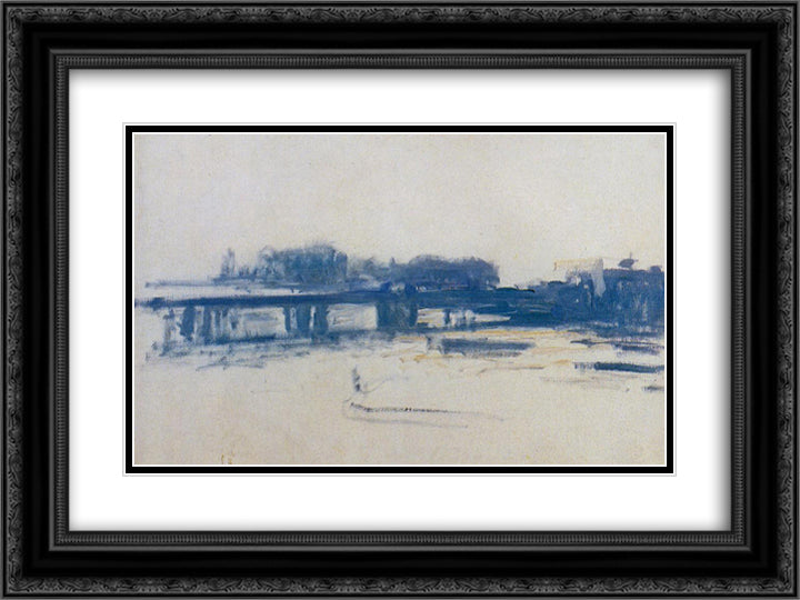 Charing Cross Bridge (study) 24x18 Black Ornate Wood Framed Art Print Poster with Double Matting by Monet, Claude