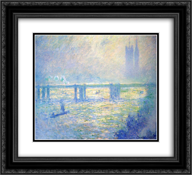 Charing Cross Bridge 03 22x20 Black Ornate Wood Framed Art Print Poster with Double Matting by Monet, Claude