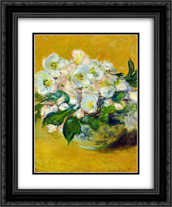 Christmas Roses 20x24 Black Ornate Wood Framed Art Print Poster with Double Matting by Monet, Claude