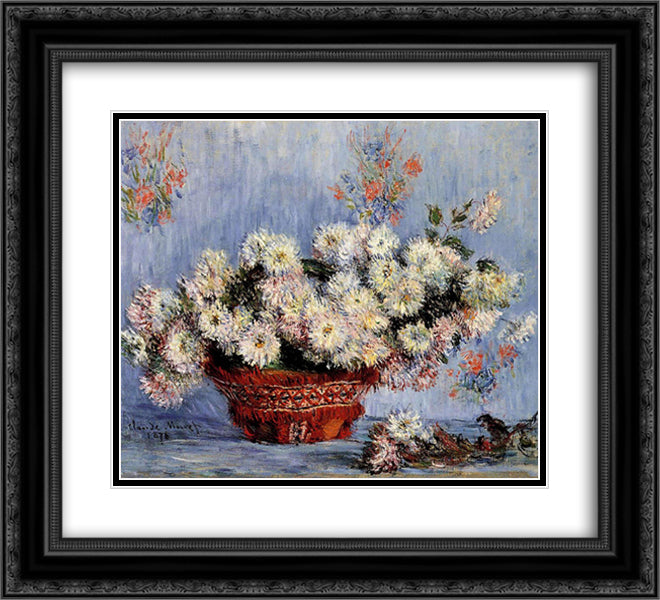 Chrysanthemums 22x20 Black Ornate Wood Framed Art Print Poster with Double Matting by Monet, Claude