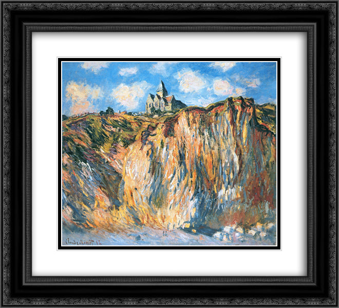 Church at Varengeville, Morning 22x20 Black Ornate Wood Framed Art Print Poster with Double Matting by Monet, Claude