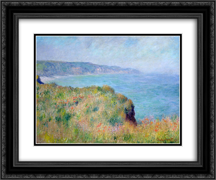 Cliff near Pourville 24x20 Black Ornate Wood Framed Art Print Poster with Double Matting by Monet, Claude