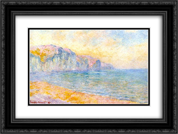 Cliffs at Pourville, Morning 24x18 Black Ornate Wood Framed Art Print Poster with Double Matting by Monet, Claude