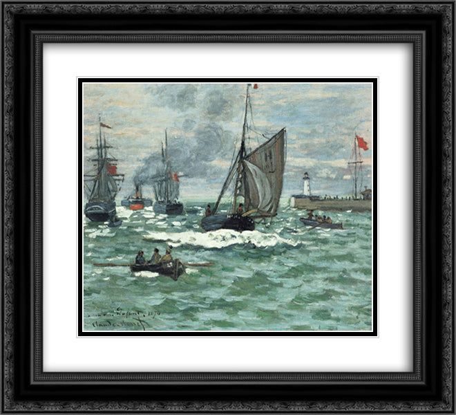 Entrance to the Port of Honfleur 22x20 Black Ornate Wood Framed Art Print Poster with Double Matting by Monet, Claude
