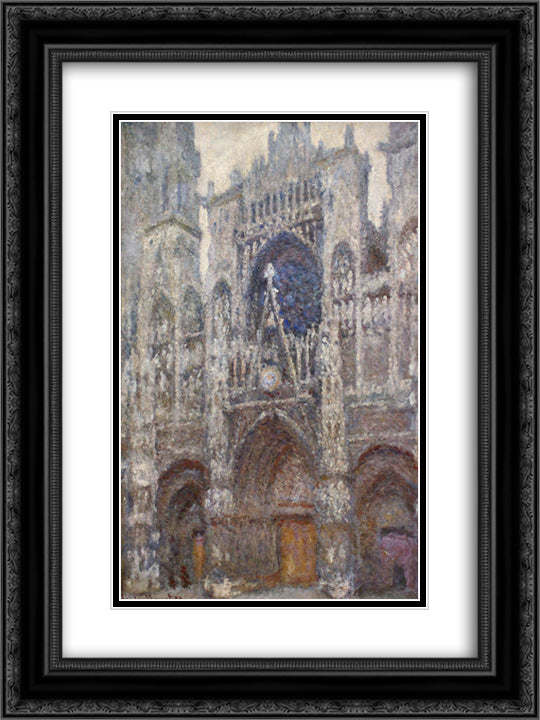 Rouen Cathedral, Grey Weather 18x24 Black Ornate Wood Framed Art Print Poster with Double Matting by Monet, Claude