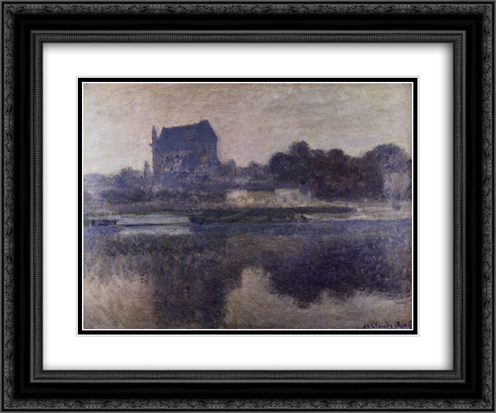Vernon Church in Fog 24x20 Black Ornate Wood Framed Art Print Poster with Double Matting by Monet, Claude
