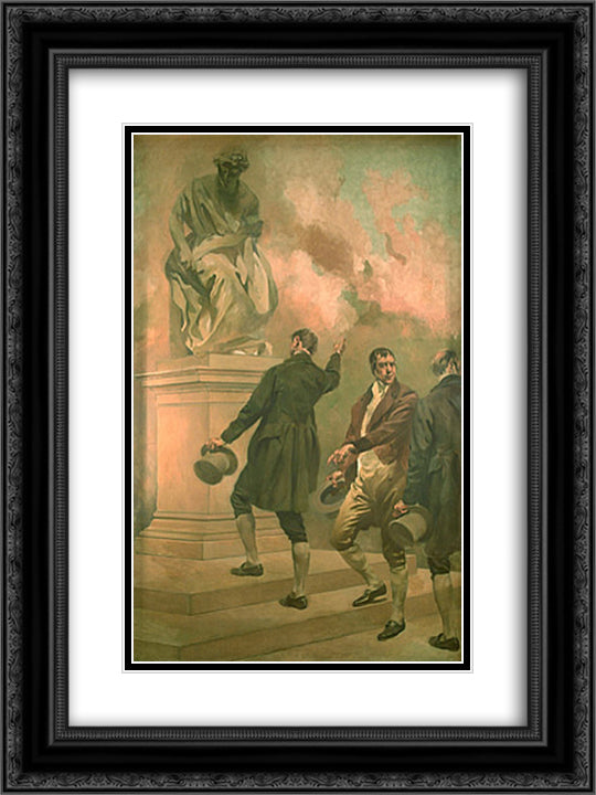Allegoric panel 18x24 Black Ornate Wood Framed Art Print Poster with Double Matting by Bordalo Pinheiro, Columbano