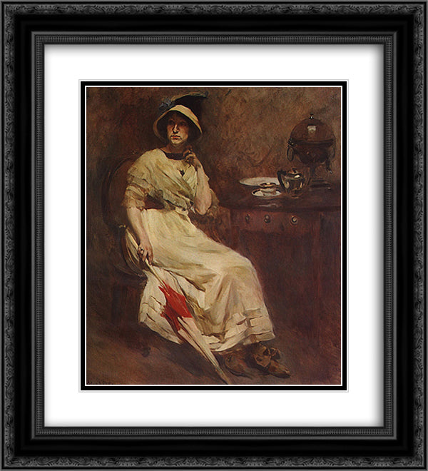 Retrato de Mª Cristina Bordalo Pinheiro 20x22 Black Ornate Wood Framed Art Print Poster with Double Matting by Bordalo Pinheiro, Columbano