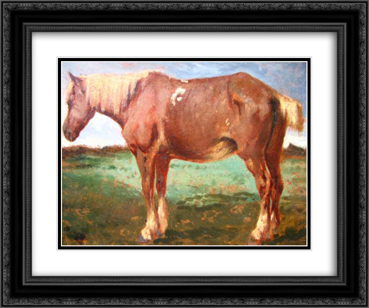 Horse Portrait 24x20 Black Ornate Wood Framed Art Print Poster with Double Matting by Troyon, Constant