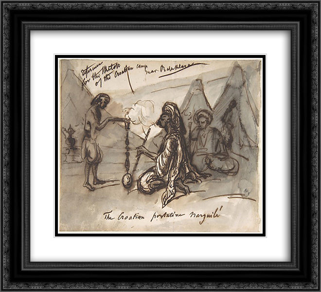 The Croatian Potentate Narguile 22x20 Black Ornate Wood Framed Art Print Poster with Double Matting by Guys, Constantin