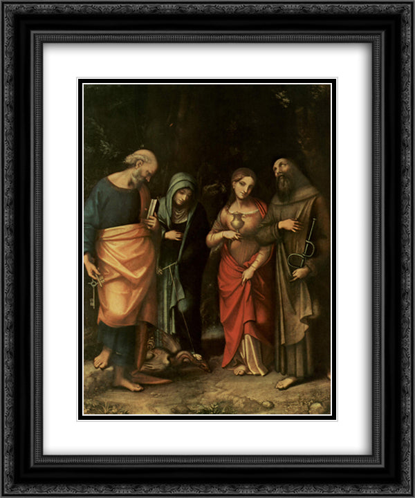 Four Saints (from left St. Peter, St. Martha, St. Mary Magdalene, St. Leonard) 20x24 Black Ornate Wood Framed Art Print Poster with Double Matting by Correggio