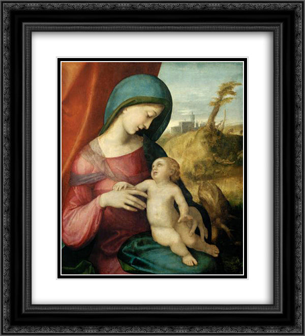 Madonna and Child 20x22 Black Ornate Wood Framed Art Print Poster with Double Matting by Correggio